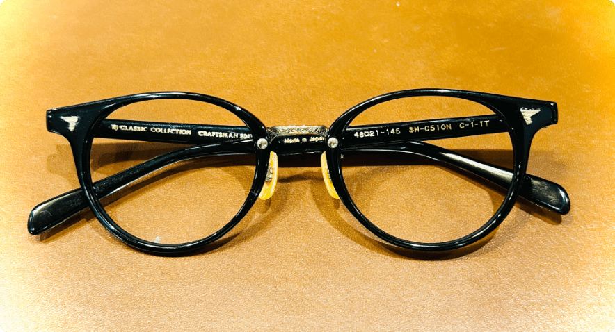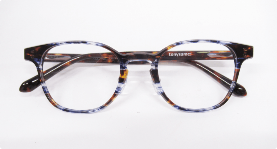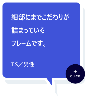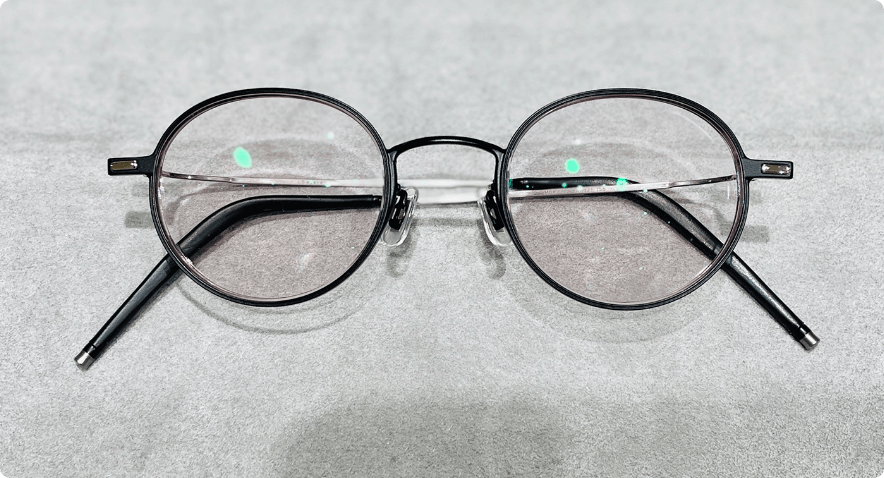 〝等高線〟を意味する名前の通り、コントアは正面の段になっている装飾と塗装の技術とが合わさり、非常に繊細で美しい一本です。加えて、見た目以上に軽い掛け心地に驚かされる珠玉の逸品です! K.K/女性