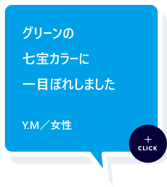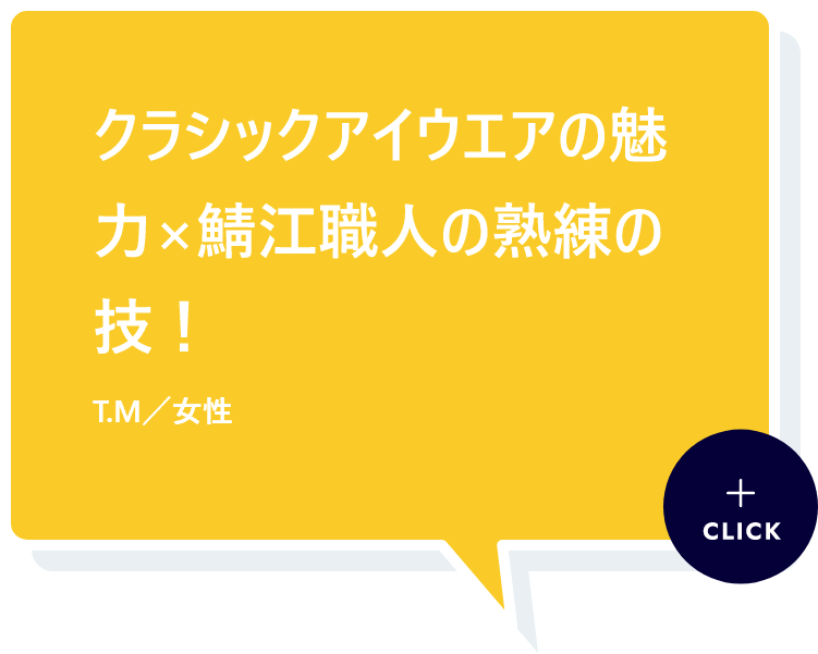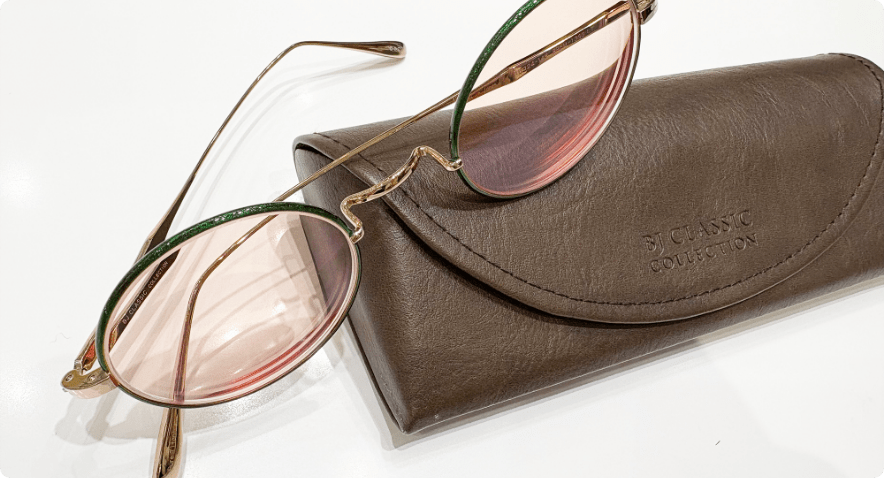ラメが入っているような光沢感のあるグリーンがよく映えてお気に入りです。レンズカラーにオレンジを入れて、より雰囲気が引き立つようにしました。どんなシーンでもアクセントになるおしゃれなメガネとして重宝しています。 Y.M/女性