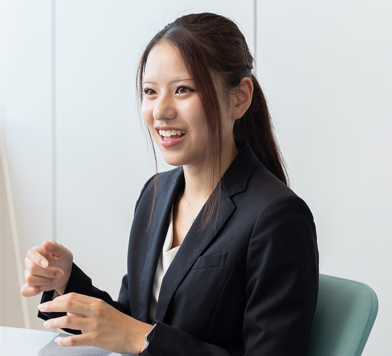 高校時代、花粉症で通っていた眼科で、自分の瞳の表面を観察してもらう機会がありました。専用の液を使って角膜に色をつけて傷の有無をチェックするという診療で、モニターに映った瞳の虹彩の動きに驚いたのを今でも覚えています。それ以来、人の目の色や形、動きに関心が向くようになりました。人によって微妙に異なる目を観察するのが好きで、進路相談の際に「目に関わる仕事がしたい」と伝えたところ、キクチメガネを紹介されました。眼科も検討していましたが、教育制度や福利厚生が整っており、また学校の先輩も多く働いている当社が、自分にはぴったりだと思い入社を決めました。